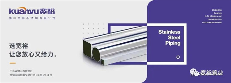 成立于2011年的寬裕管業,專業研發、生產及銷售不銹鋼機械構造管、不銹鋼食品衛生級管,不銹鋼薄壁飲用水管,配件等,首選中國寶鋼,太鋼等知名的優質材料生產。寬裕不銹鋼管產品及其綜合解決方案的應用遍及世界多個國家和中國各大地區,成為了廣東省不銹鋼行業最不容忽視的新勢力之一!
